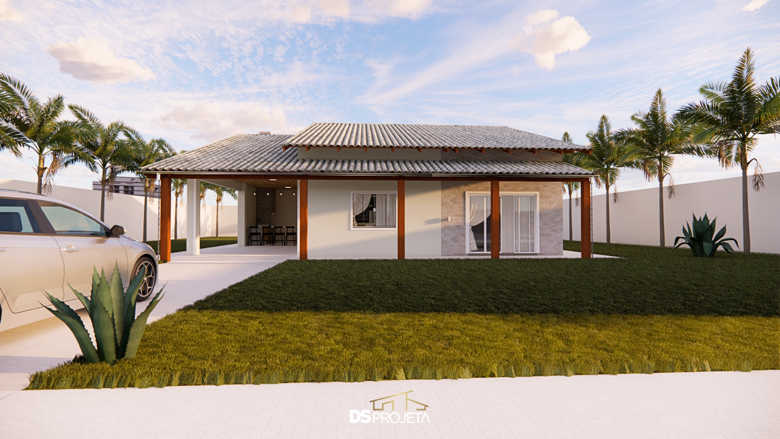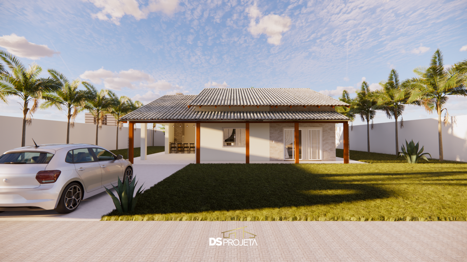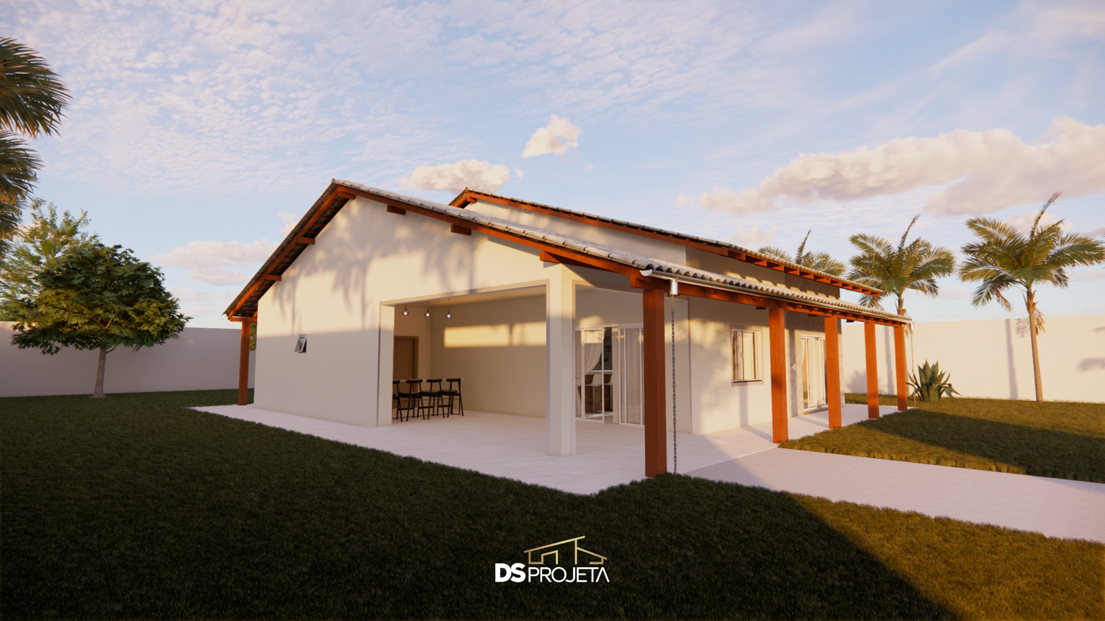 Com 2 Quartos e uma suíte master com closet bem distribuídas, área gourmet integrada com a garagem, mais 2 banheiros, cozinha, sala de estar e jantar, ele é perfeito para chácaras ou terrenos urbanos.